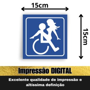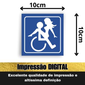 Nosso adesivo “Cadeirante Azul” é feito em vinil premium, 10×10 cm, à prova d’água, com recorte eletrônico e fácil aplicação.